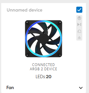 Legacy devices such as the connected Aspect 14 RGB-fan connected here can't be daisy-chained in the same way as the ARGB Gen 2-devices, meaning that if you connect multiple Gen 1-units to the header, you will only see one device in the web-application, and all other units in the chain will copy the colors of the first unit.