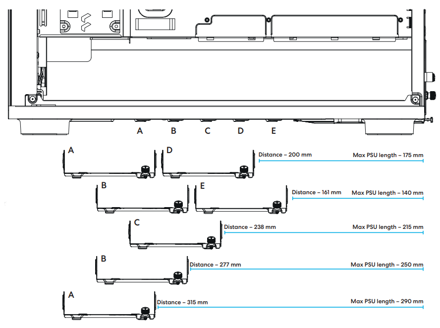 The case supports power supplies up to 290 mm in length with only one 3.5" drive installed. With both, the max length would be 200-161 mm, depending on where you decide to install them.